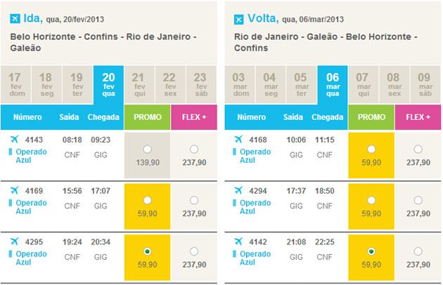 A promoção da Azul Linhas Aéreas, é válida para viagens entre os dias 19 de fevereiro de 2013 a 27 de junho de 2013, exceto nas datas de 27 a 29 de março de 2013 e de 31 de março a 01 de abril de 2013.