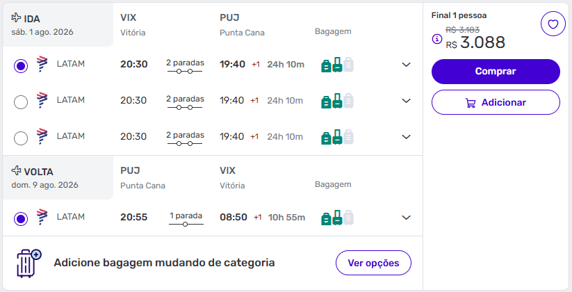 Além disso, os voos foram encontrados hoje, na Decolar, e podem mudar rapidamente — tanto em preço quanto em disponibilidade.