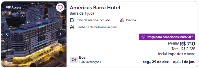 Há diversas outras ofertas de hotéis com preços baixos no site, tanto para o Rio quanto para diversas outras cidades, estados e países. Vale a pena pesquisar com calma, porém é preciso ficar atento à validade das ofertas.