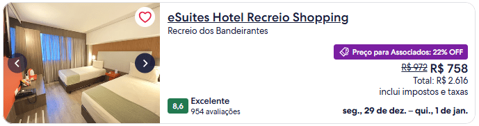 - Selecione a opção “Preços para Associados”: se você for um cliente associado (é grátis!), selecione essa opção no filtro para encontrar hospedagens com descontos ainda maiores.