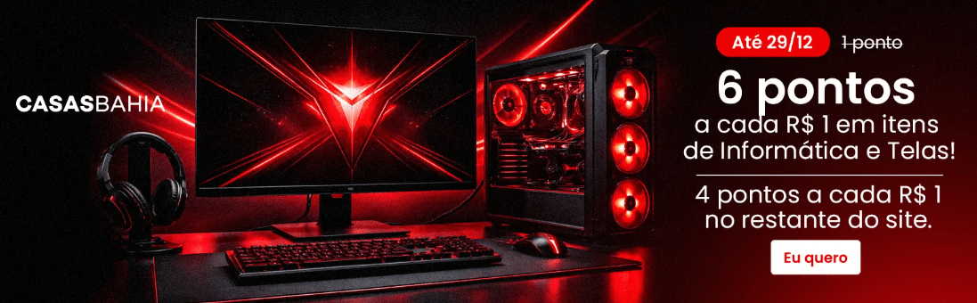 Casas Bahia: 6 pontos a cada R$ 1,00 em Telas e Informática e 4 pontos a cada R$ 1,00 no restante do site.