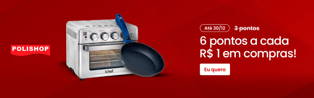 Polishop: 6 pontos a cada R$ 1,00 em compras realizadas no site.