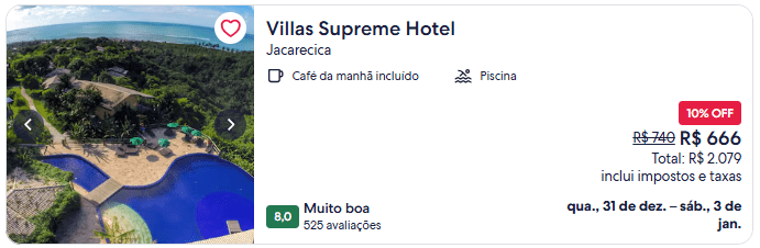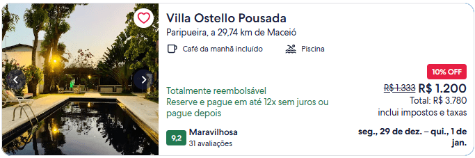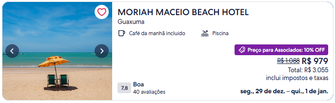 Há diversas outras ofertas de hotéis com preços baixos no site, tanto para Maceió quanto para diversas outras cidades, estados e países. Vale a pena pesquisar com calma, porém é preciso ficar atento à validade das ofertas.