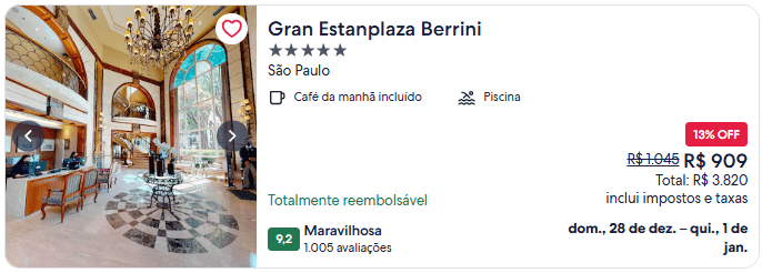 Há diversas outras ofertas de hotéis com preços baixos no site, tanto para São Paulo quanto para diversas outras cidades, estados e países. Vale a pena pesquisar com calma, porém é preciso ficar atento à validade das ofertas.