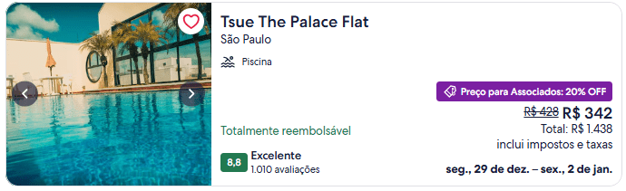 - Selecione a opção “Preços para Associados”: se você for um cliente associado (é grátis!), selecione essa opção no filtro para encontrar hospedagens com descontos ainda maiores.