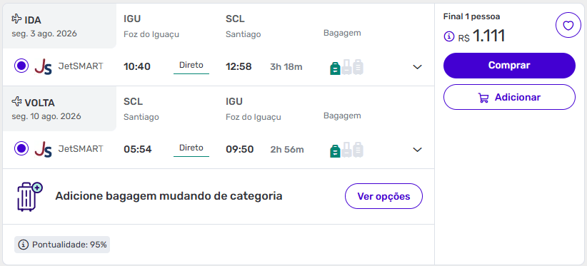 Essa é uma das melhores combinações possíveis: preço baixo, voo curto e viagem no inverno chileno — ideal para quem quer ver neve nas montanhas.
