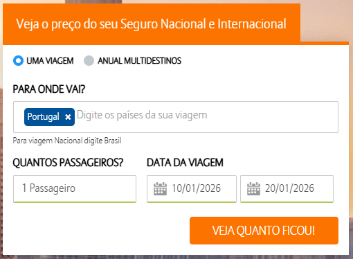 O processo é simples e totalmente on-line. Ao acessar o site da seguradora, o viajante informa o destino, as datas da viagem e o número de passageiros. Em seguida, os planos disponíveis já aparecem com os valores promocionais aplicados.