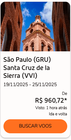 São Paulo (GRU) → Santa Cruz de la Sierra (VVI) – R$ 960,72 (19/11/2025 a 25/11/2025)