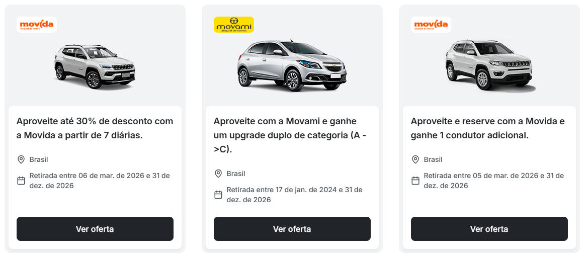 Como acontece com passagens e hotéis, as ofertas podem mudar conforme a disponibilidade de carros em cada destino. Com a promoção chegando ao fim em 15 de março, quem pretende reservar pode encontrar boas oportunidades ao pesquisar ainda durante os últimos dias da campanha.