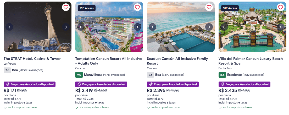 Exemplos de hotéis em promoção no Brasil