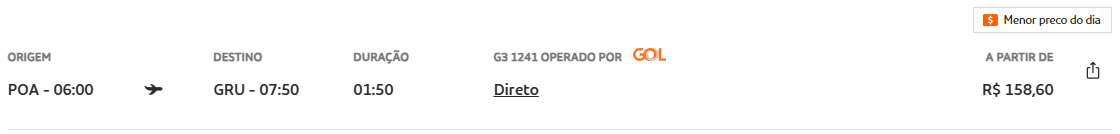 Foi nesta promoção que nós encontramos voos saindo de São Paulo (GRU – Guarulhos) para Porto Alegre (POA) a partir de R$ 291,38 ida e volta incluindo taxas, como mostram as imagens abaixo do site VoeGOL: