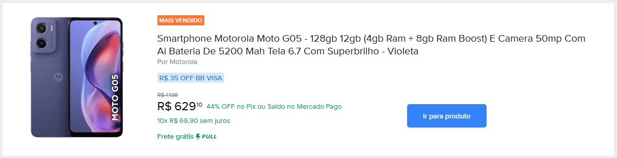 Motorola Moto G05 de R$ 1.138 por R$ 629 (44% de desconto!)