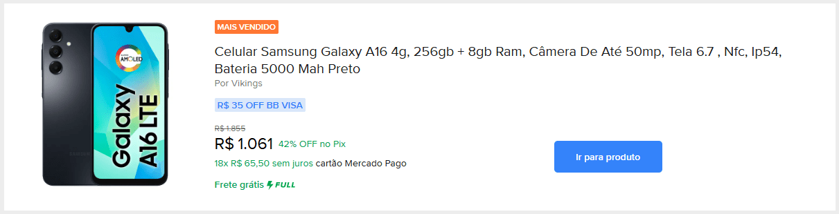 Samsung Galaxy A16 de R$ 1.855 por R$ 1.061 (42% de desconto!)
