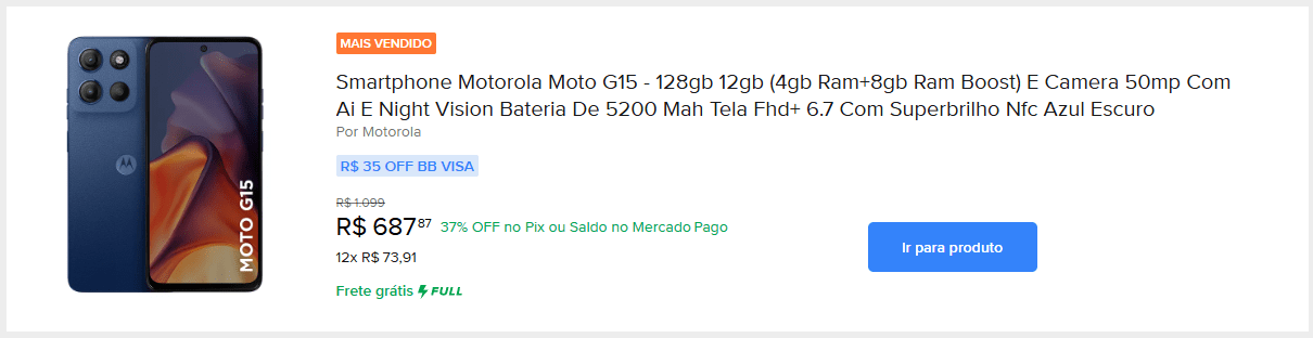 Motorola Moto G15 de R$ 1.099 por R$ 687 (37% de desconto!)