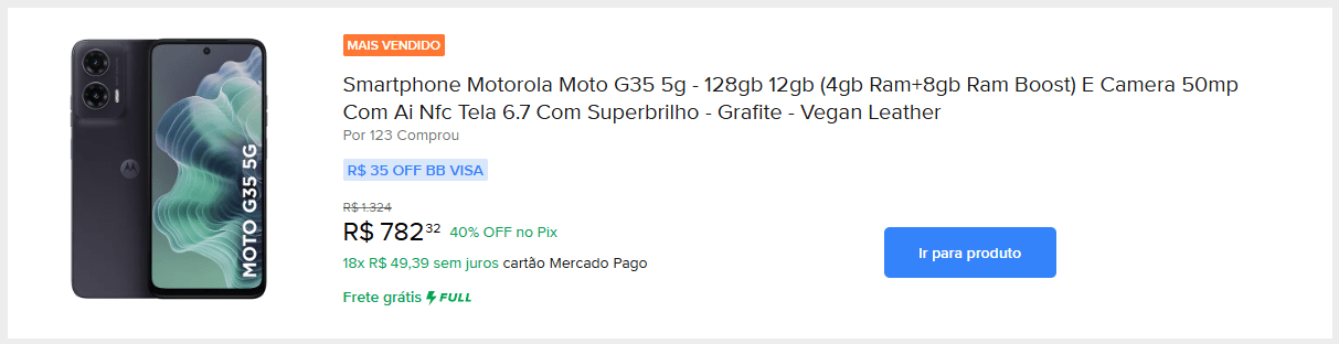Motorola Moto G35 de R$ 1.324 por R$ 782 (40% de desconto!)