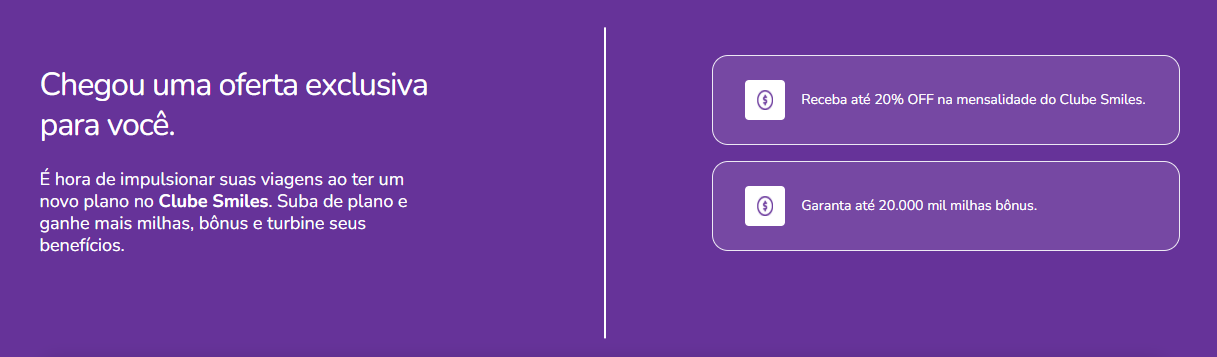A campanha funciona exclusivamente para quem faz upgrade de plano, ou seja, sai de um plano inferior para um superior dentro do Clube Smiles.