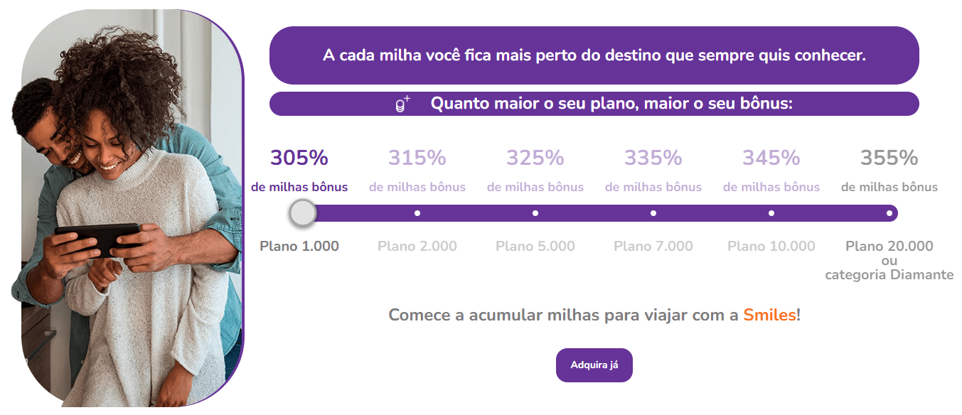 A compra das milhas pode ser feita diretamente na página oficial da promoção no site da Smiles durante o período da campanha.