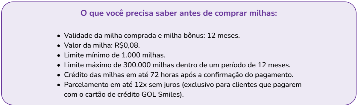 - limite máximo de compra: até 300.000 milhas dentro de um período de 12 meses