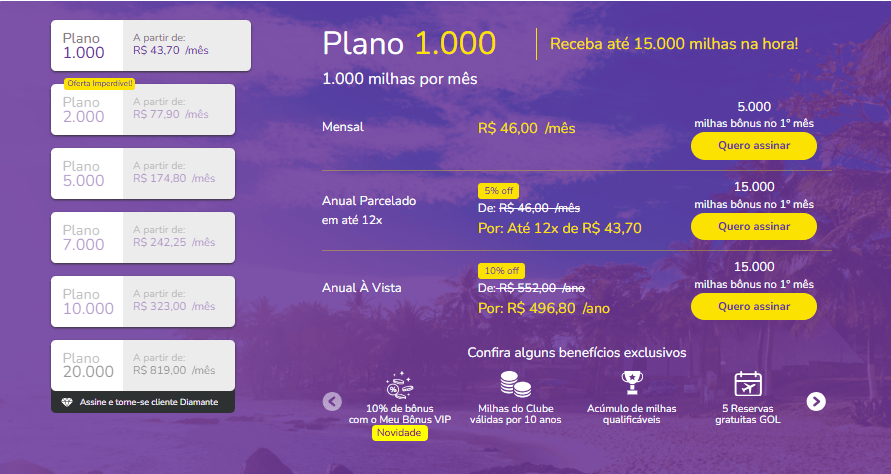 Veja um exemplo para quem é assinante do Clube Smiles Plano 1.000: