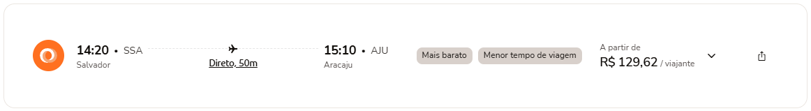 - Salvador (SSA) → Aracaju (AJU) — R$ 129
