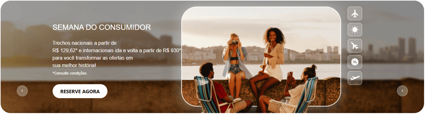 As passagens estão sujeitas à disponibilidade de assentos na aeronave e as condições completas devem ser consultadas diretamente no site da companhia.