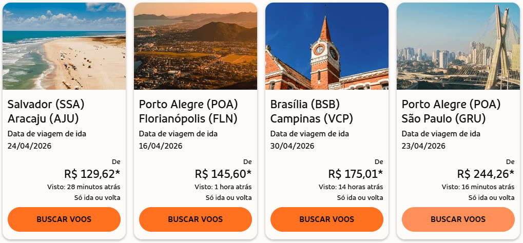 Em buscas realizadas neste domingo (15), ainda é possível encontrar passagens a partir de R$ 129 por trecho, com taxa de embarque já incluída.