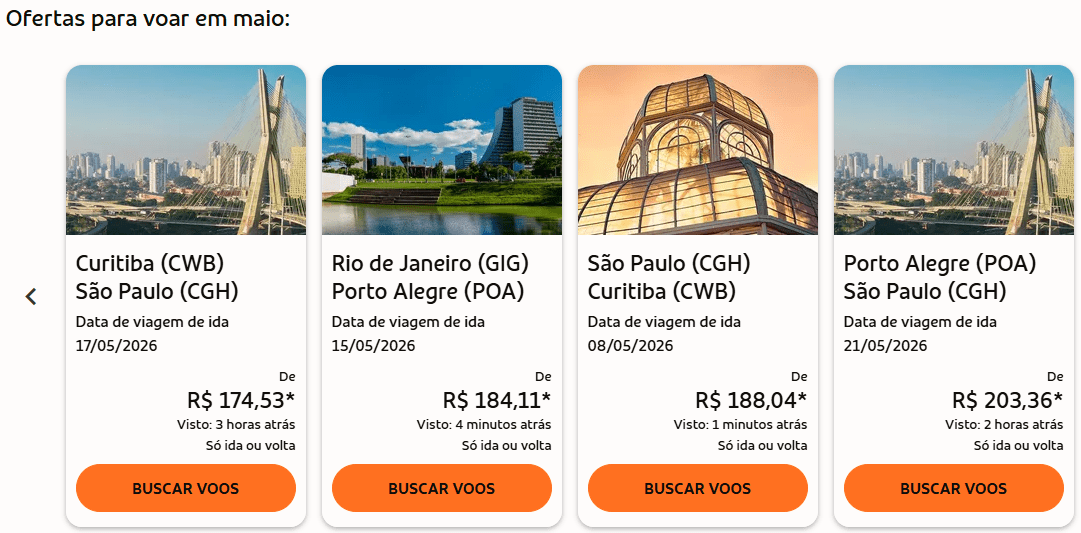 - Curitiba (CWB) → São Paulo (CGH) — 17/05/2026 — a partir de R$ 174