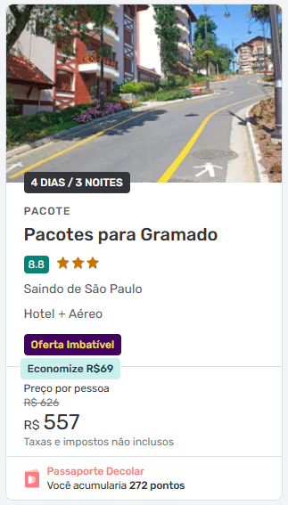 👉 O transfer entre Porto Alegre e Gramado (cerca de 120 km) não está incluso no pacote, mas pode ser contratado facilmente durante a reserva.