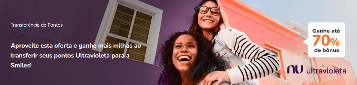 Só hoje! Transfira pontos Nubank Ultravioleta para a Smiles e ganhe até 70% de bônus