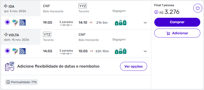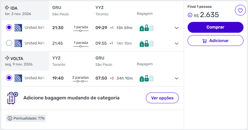 - Observação: a partir de R$ 2.635 tarifa sem bagagem despachada