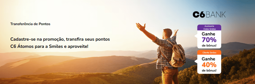 A Smiles lançou uma nova oportunidade para quem tem pontos no C6 Átomos e quer transformar esse saldo em viagens: bônus de até 70% na transferência, válida por tempo limitado.
