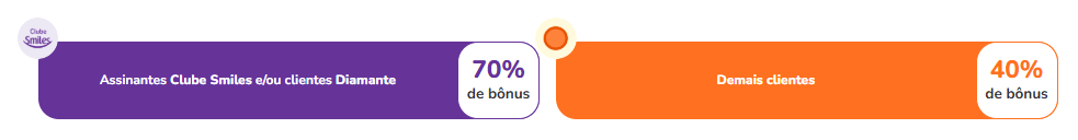 - Até 70% de bônus para assinantes do Clube Smiles ou clientes categoria Diamante