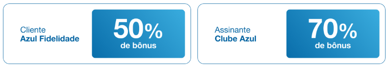 • Clientes Azul Fidelidade recebem 50% de bônus