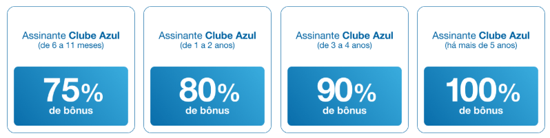 - Assinantes Clube Azul: 70% de bônus
