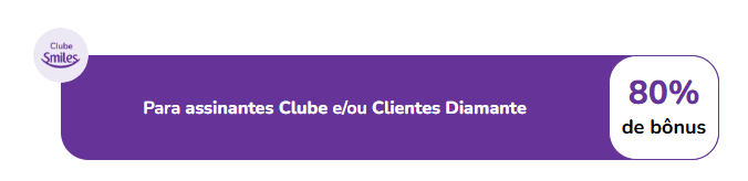 - Clientes Diamante e/ou Clube Smiles: 80% de bônus