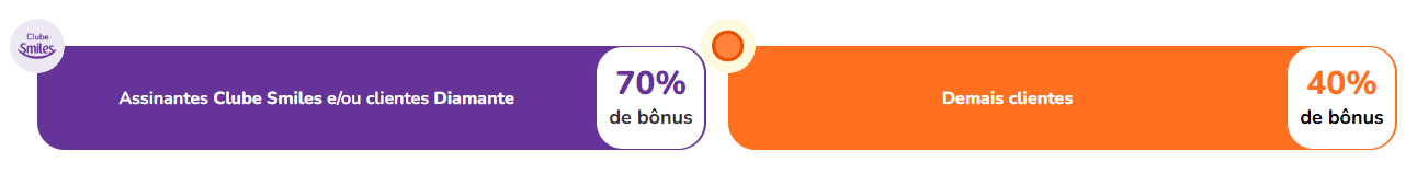 - Clientes Clube Smiles ou categoria Diamante: 70% de bônus