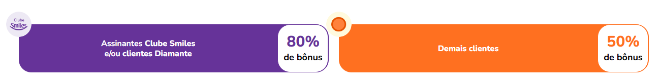 - Clientes Diamante e/ou Clube Smiles: 80% de bônus