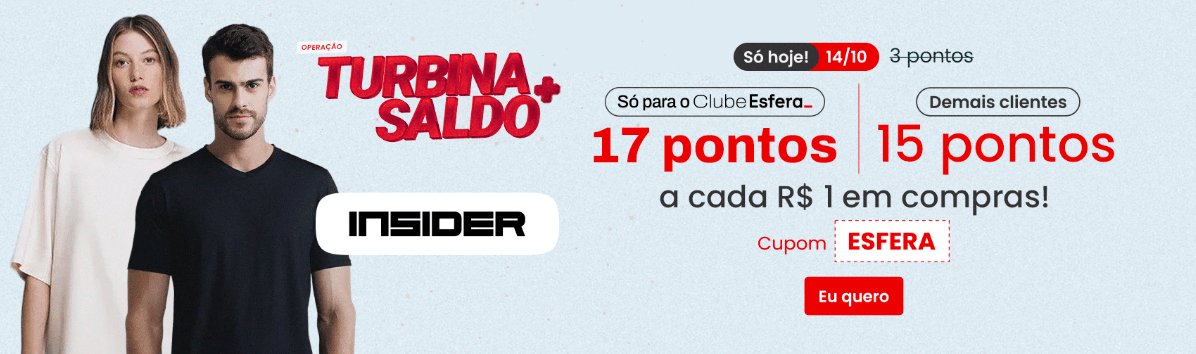 17 pontos a cada R$ 1,00 para clientes Clube Esfera e 15 pontos para demais clientes.