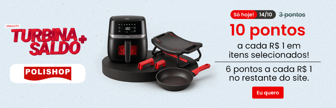 Polishop: 10 pontos a cada R$ 1,00 em itens selecionados e 6 pontos para demais produtos.