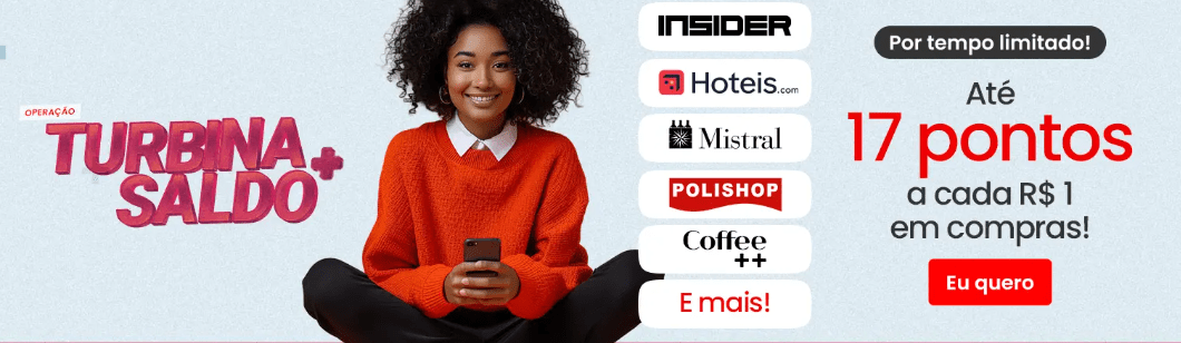 Nesta campanha, é possível acumular até 17 pontos por real gasto em compras nos parceiros participantes.