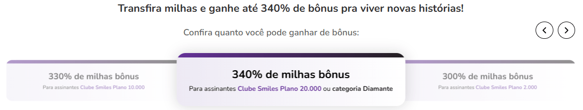 A bonificação de até 340% é uma das maiores já disponibilizadas pela Smiles e costuma ser utilizada por participantes que: