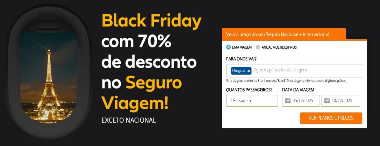 São até 70% off em seguro viagem internacional, uma redução inédita que transforma a proteção do viajante em uma das ofertas mais agressivas deste ano. Mas o relógio está correndo: a campanha está na reta final, e quem deixar para depois pode perder a oportunidade de garantir cobertura completa por uma fração do preço. É agora ou nunca.