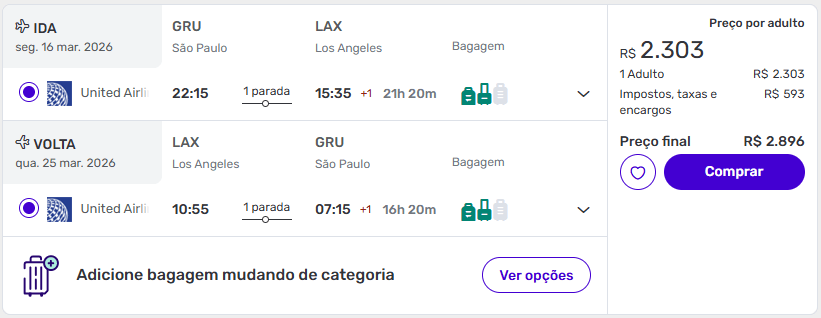 - São Paulo → Los Angeles | 16 a 25 de março de 2026