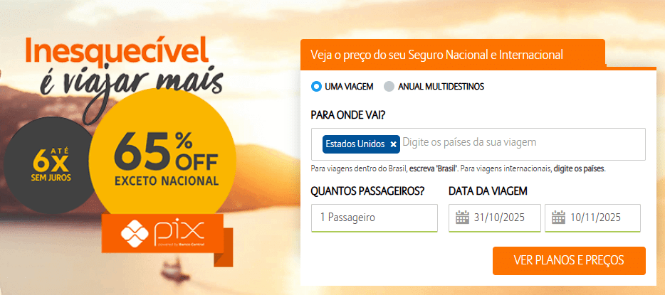 Está rolando nesta segunda-feira (27/10) uma mega promoção de seguro viagem internacional com 65% de desconto!