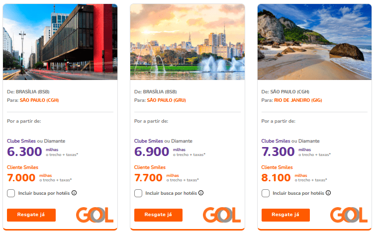 - Brasília – São Paulo (Congonhas): a partir de 6.300 milhas