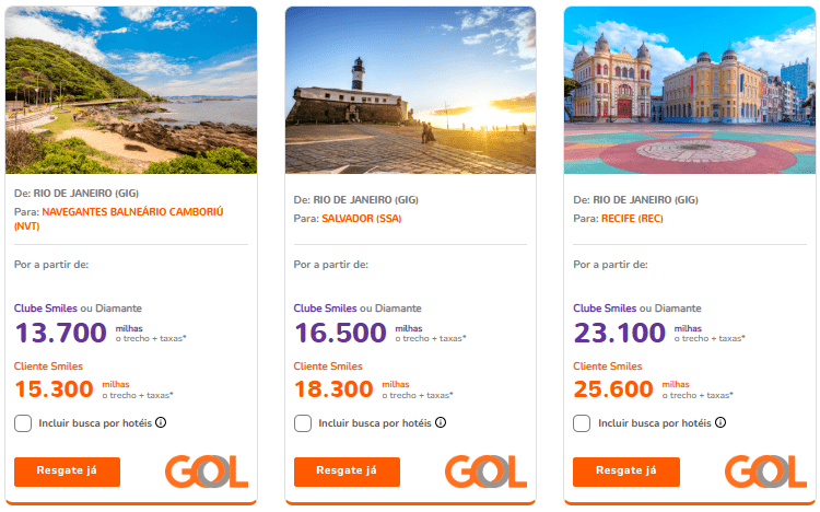 - Rio de Janeiro – Navegantes: a partir de 13.700 milhas