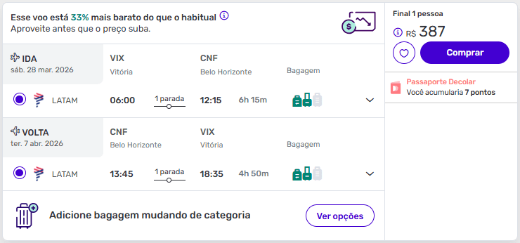 Passagens de Vitória para Belo Horizonte a partir de R$ 387 ida e volta.