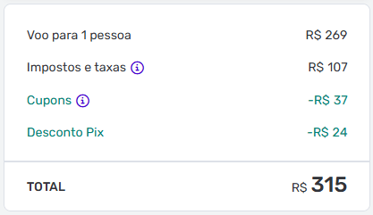 R$ 315 ida e vota com taxas inclusas!