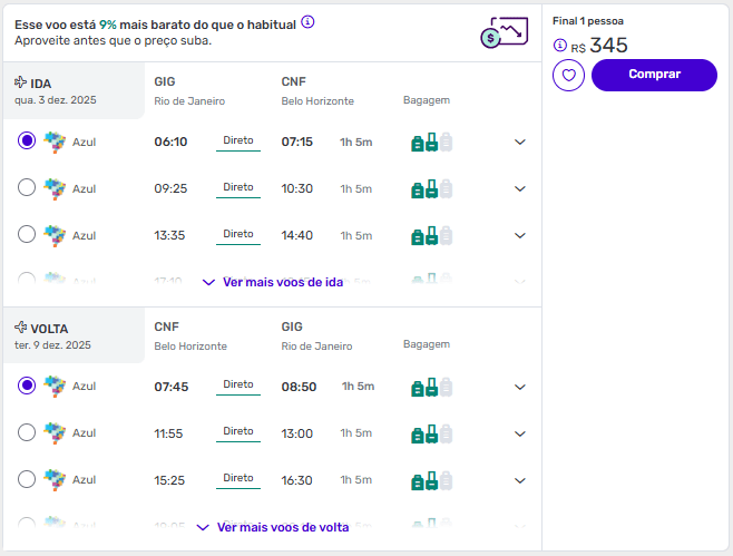 Passagens do Rio de Janeiro para Belo Horizonte a partir de R$ 345 ida e volta.