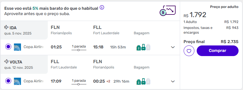 De Florianópolis para Fort Lauderdale a partir de R$ 2.735 ida e volta.